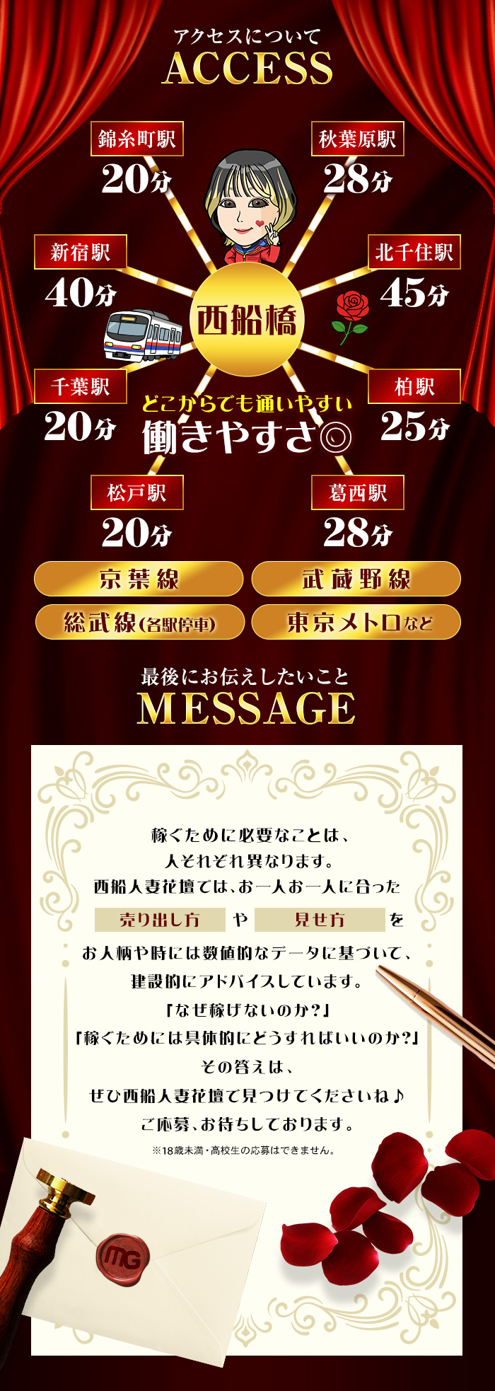 写メ日記をアップしてすぐに予約が入る!集客力抜群の人妻店今回インタビューしたのは“こはく”さん。西船橋駅は乗り入れる路線が多く、多数の集客が見込めると感じて同店に応募をしたとのこと。入店後の印象を尋ねると、「予想していた通りお客様の数が多いです。写メ日記をアップすると、早ければ5分、遅くても30分以内に予約が入ります」と笑顔で話してくれました。