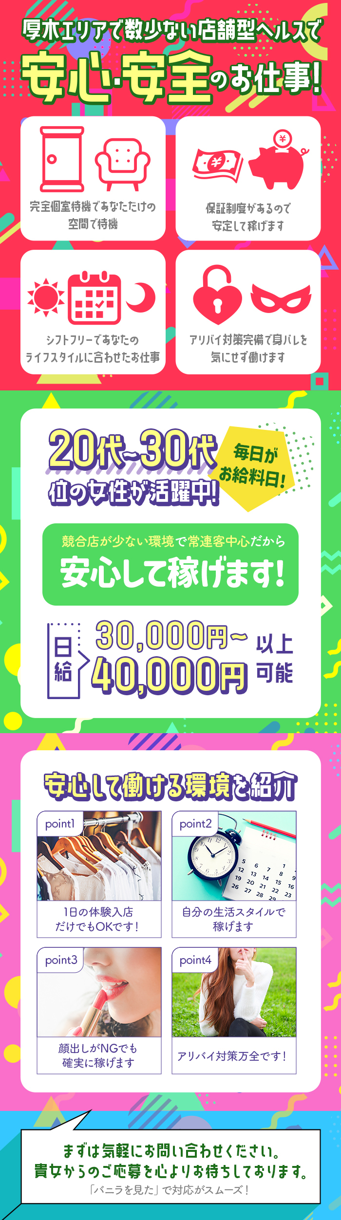 | 交 通 | 小田急『本厚木駅』徒歩5分 ◇出張面接OK ◇面接交通費支給致します |