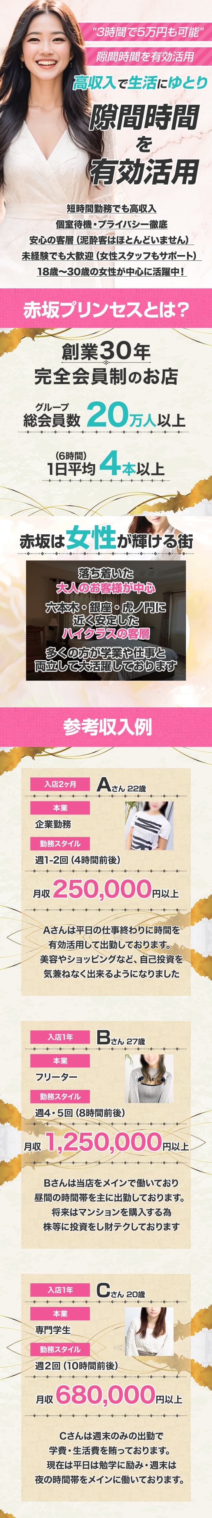 もちろん連絡先を知らせずに完全匿名でお問い合わせも可能です!その場合、当店のバニラのページ下部にある「応募・質問フォーム」から必要事項を入力して頂いて、お店にメールアドレスを公開するかどうかを選べるのでそちらで公開しないと選択してもらえば全ての連絡をバニラのサイト内のみで行えます!なのでお気軽にお問い合わせくださいー♪**************************************************************************** ★☆★体験入店5万円保証プラン実施中★☆★ お試し入店1日だけでももちろんOK やめるのももちろんOK 合わないと感じたら他店様への移動ももちろんOK なんと!?赤坂エリアには当店以外にヘルスのお店が1軒もないのです。 だからお客さんを独占状態なんです!!!! 一応他のデリヘルのお店は何軒かはあるのですが、赤坂は道が混みやすく時間のロスが凄いんですよね。 当店は完全地域密着型なので移動時間はナシなんです♪ だから回転効率がめちゃめちゃいいんです! さらに赤坂で働くメリットをご紹介いたします。 ☆場所柄、お客様は紳士的! ☆赤坂でヘルス店は当グループの独占経営! ☆4駅6路線が使える好立地! ☆赤坂なら内緒で働けること間違いなし! ☆マイナンバー対策万全! ぜひ皆さんも赤坂で働いてみませんか??
