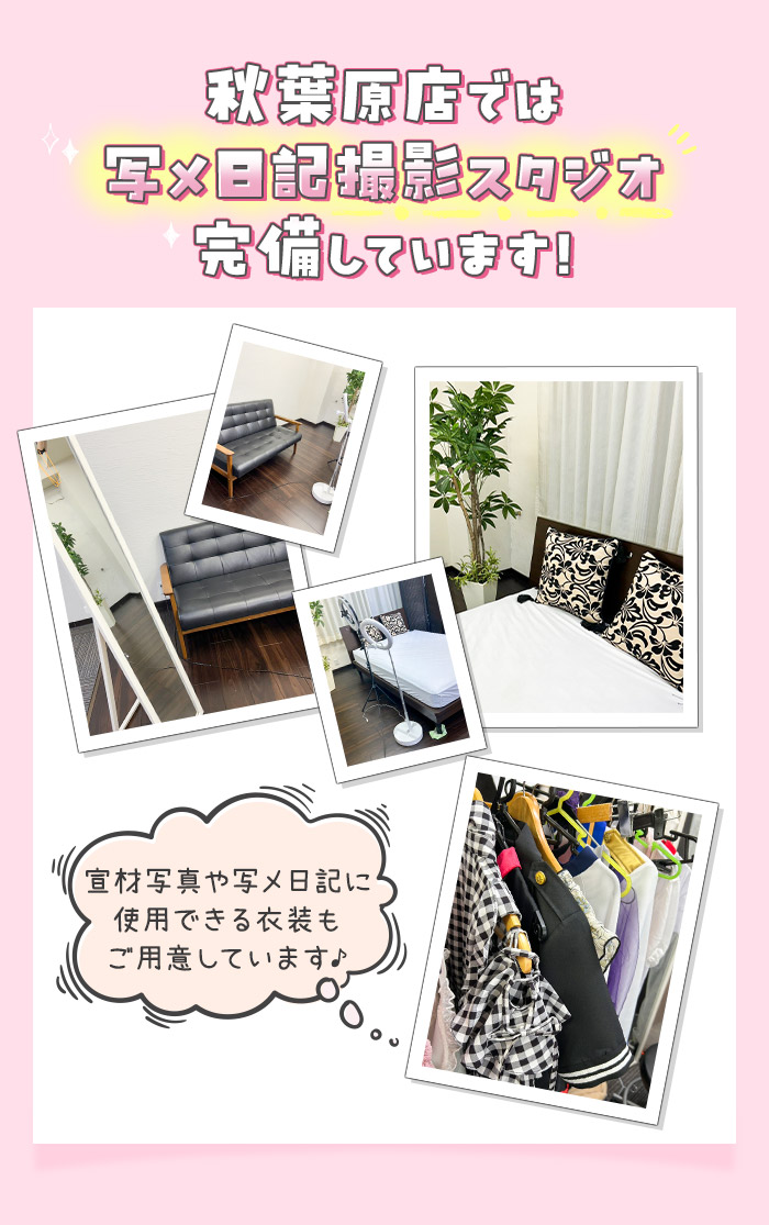 普段着ることのないような衣装(学生服やメイド服など)を着ることができるお店だよ♪いつもとちがう自分に変身してからのお仕事は、気持ちも入りやすくて楽しいよね!お店によっては色々な種類をレンタルしてくれるみたいだから詳しくは聞いてみてね♪