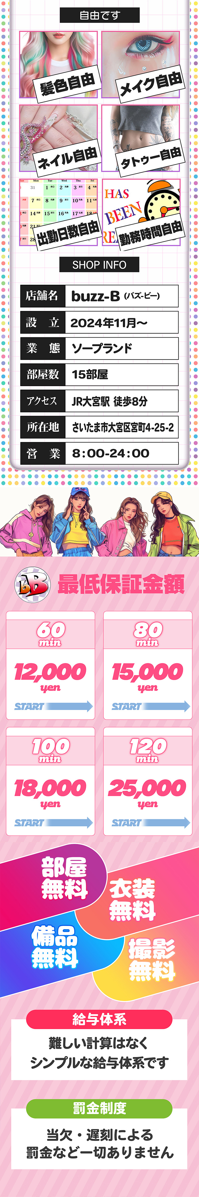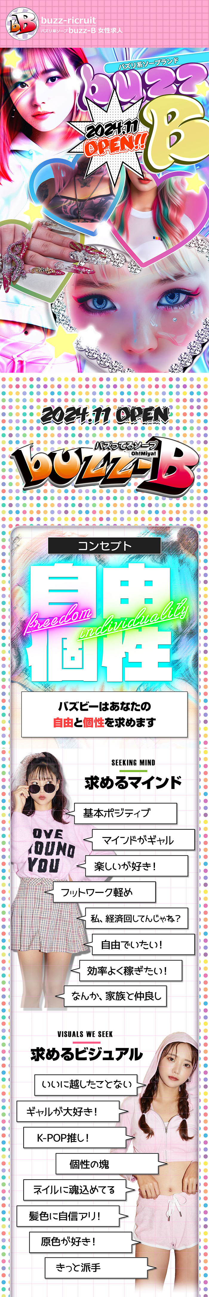 buzz-Bは何処よりも自由な場所!!自分らしく!輝く為に、個性を活かして働けるお店♪ネイル・タトゥ・髪色全て自由\(^o^)/大宮唯一のギャル専門店buzz-B!!ご質問・ご応募お待ちしてます🐔広報部シマち
