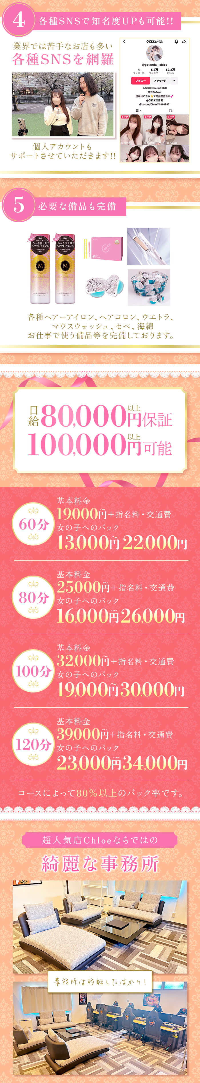 この業界で当たり前のように見かける、嘘や偽りを書いて女の子を集めるつもりもありません。 『ここに書いているお給料バックが全てです。』 小さなお店ですが、バックやお店の働きやすさは他のお店にはないと思っております。 同価格帯のお店でトップクラスのはずです。 ちょっとでも気になって頂けたら一度お話しだけでも聞きにお越しくださいませ。 ・‥…━━━☆・‥…━━━☆・‥…━━━☆ また他店でお客様を女の子ご自身で抱えている女の子も多いと思います。 もし万が一当店に移籍して頂けるという女の子がいれば、 お給料バックですが全額フルバックさせて頂きます!! ・‥…━━━☆・‥…━━━☆・‥…━━━☆ またお場所によっては完全送迎させてください。 送迎くらいさせてください。 また要望があればなんでもご相談ください。 全て全力で対応させて頂きます。