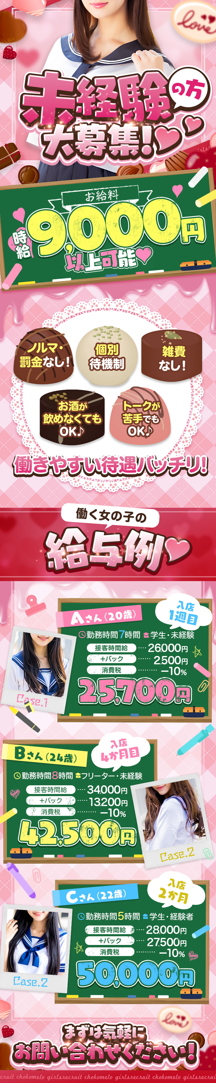 - 体験入店費用、交通費支給。