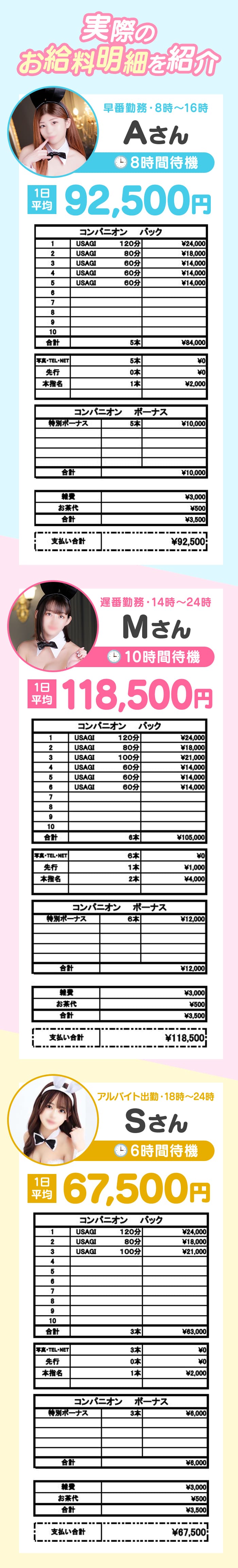 勤務時間にもよりますが 片番でも7万円~ 長いお時間ですと10万円以上も可能でございます♪