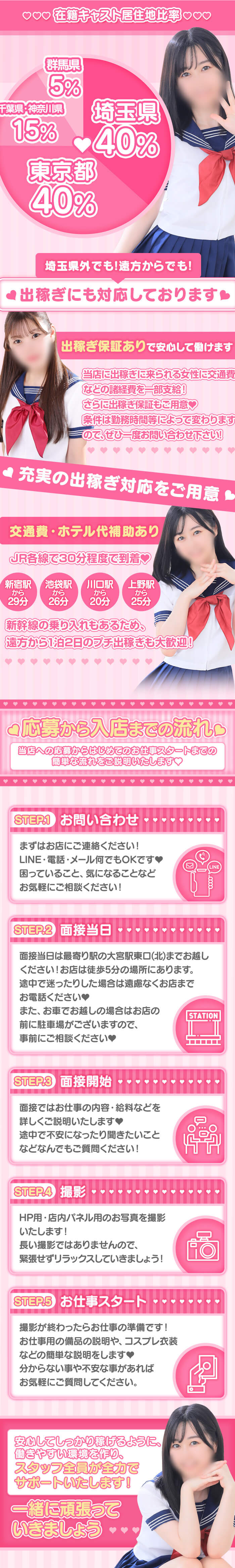 ♡大宮カジュアルソープ♡吉原・川崎並みに稼げます!JRで新宿から29分・東京から32分・池袋から26分・上野から25分の30分程度で到着♡川崎、関内、土浦、船橋からでも1時間程度で到着♡土日だけの1泊2日のプチ出稼ぎ、もちろん通いも大歓迎です!面接にお越し頂いた方全員に合否関係なく3000円の交通費をプレゼントさせて頂きます!