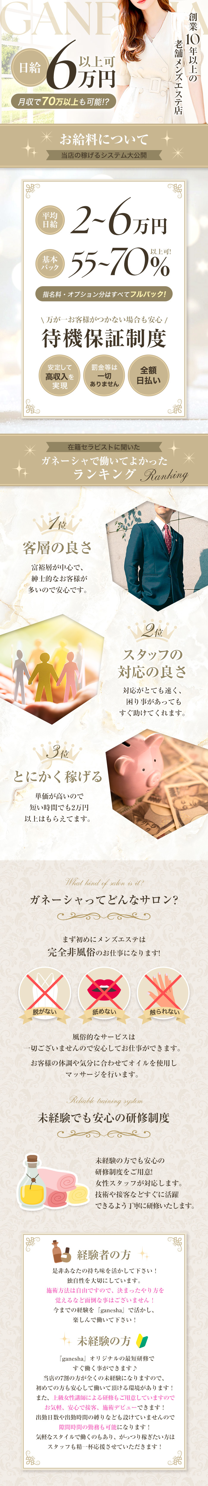 大手グループが経営しているお店だよ。待遇や条件も手厚くて安心だし、集客力もあって女の子が稼ぎやすい!待遇や条件はグループの中でも店舗ごとに変わってくるから、気になるポイントは問い合わせて聞いてみよう♪