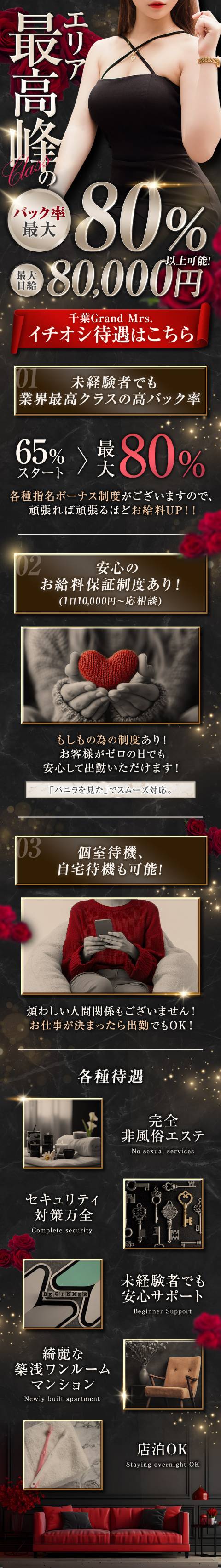 🌟どんなお店なの?🌟「メンズエステって少し不安…」と思っている方もいるかもしれませんが、グランミセスは風俗的なサービスは一切なし!安心して働ける環境です✨・完全個室待機でプライバシーもバッチリ保護👀✨・シフトは完全自由制!・ノルマや罰金も一切ありません🙅♀️・雑費や備品代もゼロ👌・未経験の方も大歓迎で丁寧なサポートあり💪「経験がなくても大丈夫かな?」という方も、しっかりサポートするので、安心して一歩を踏み出してくださいね!💰どれくらい稼げるの?気になるのはやっぱり収入ですよね💴✨グランミセスは業界トップクラスのバック率だから、しっかり稼げる環境です。📌70分コース:16,000円⇒バック率65%→10,400円📌90分コース:18,000円⇒バック率65%→11,700円📌120分コース:23,000円⇒バック率65%→14,950円雑費などの費用は一切なし!オプションフルバックとなりますので更に稼げちゃいますよー頑張った分がしっかりお給料に反映されるのが嬉しいポイント!✨✨最後に…グランミセスは大人女性が輝ける場所です。私たちは「一緒に成長していきたい」と思える方を大歓迎しています!まずは気軽にお話しだけでもどうぞ😊📩求人LINEID:gm2025📱TEL:070-5029-5418それでは、皆さまにお会いできるのを楽しみにしています!🌸