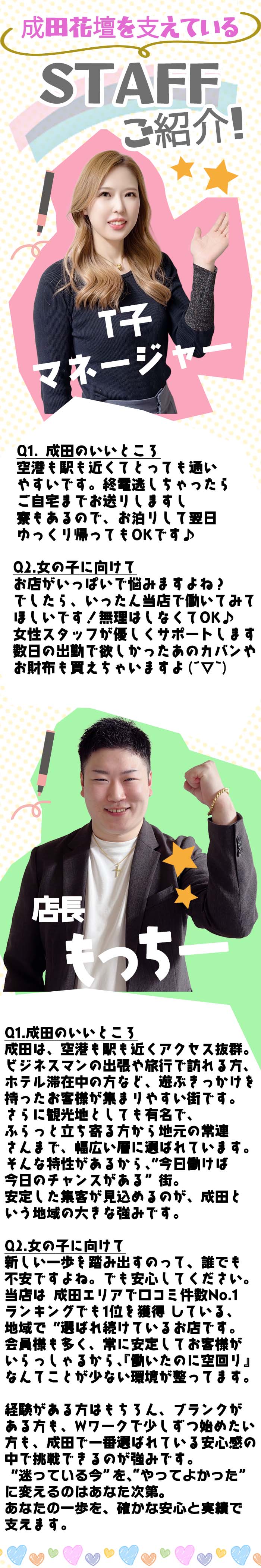 女性の店長さんが働いているお店だよ。女性の気持ちを同じ目線で分かってくれる店長さんが一緒にいてくれたら、きっと心強いよね。お仕事についての相談にも乗ってくれるから、気になることがあれば気軽に問い合わせてみよう♪