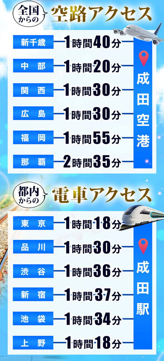 成田駅は都内からのアクセスも抜群‼
