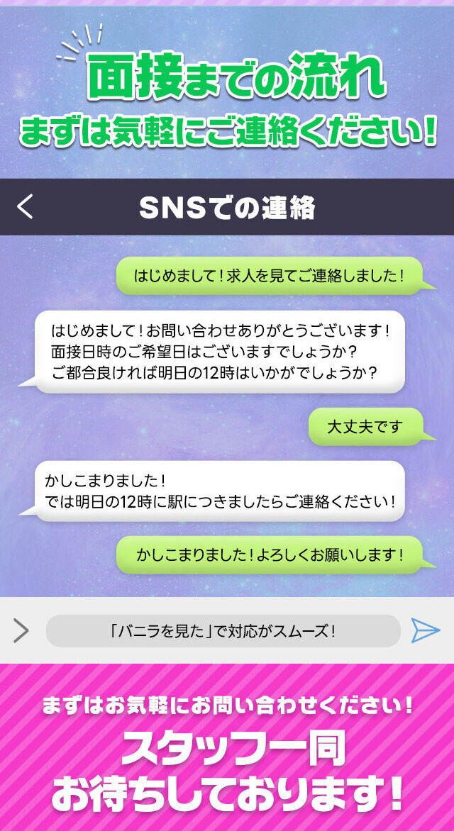 ご応募の際に「バニラ求人を見た」と伝えるだけでOK