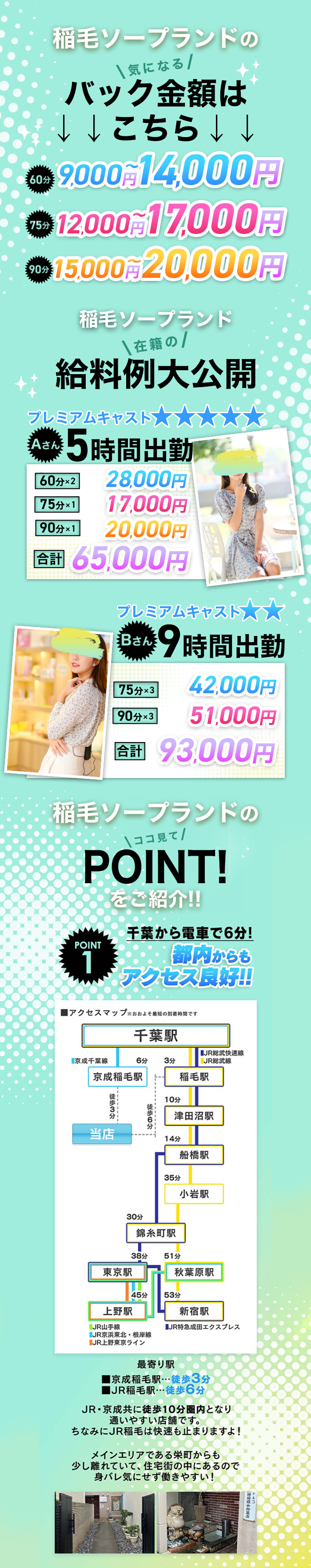 JR稲毛駅・京成稲毛駅が最寄りとなります。 JR稲毛駅・徒歩7分。 京成稲毛・徒歩3分。 アクセスのよいお店となりますのでチェックお願いします😊