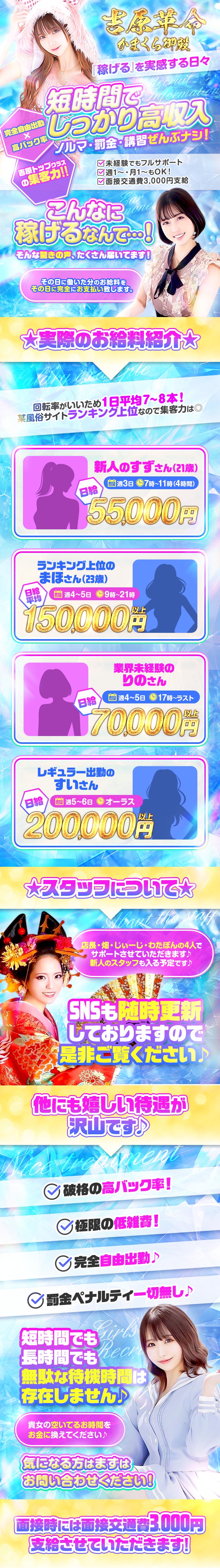 大手グループが経営しているお店だよ。待遇や条件も手厚くて安心だし、集客力もあって女の子が稼ぎやすい!待遇や条件はグループの中でも店舗ごとに変わってくるから、気になるポイントは問い合わせて聞いてみよう♪