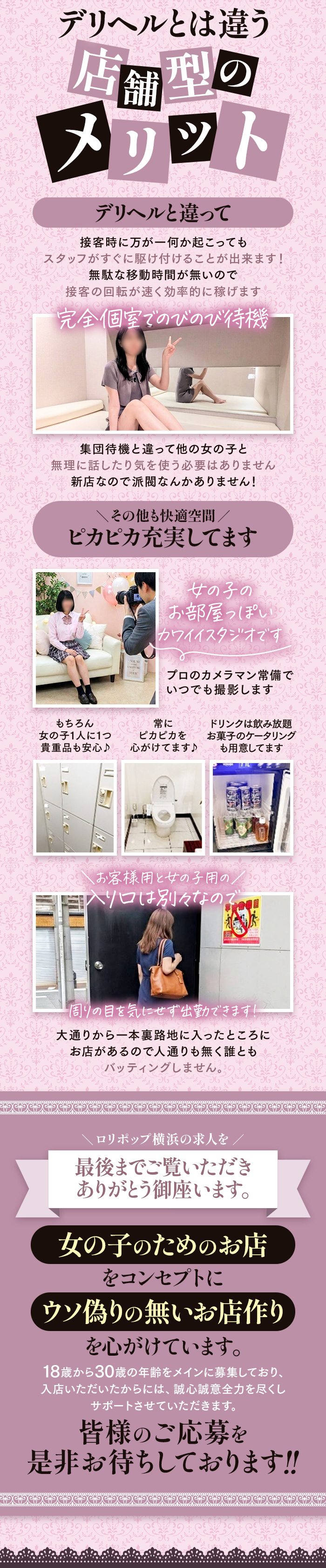 女の子のお仕事に対してノルマや罰金などがないお店だよ♪お店によっては、入店から◯ヶ月以降からはノルマが発生したり、無断欠勤などでは罰金になってしまうなどルールがあったりもするから、入店前にはしっかり聞いてみてね!