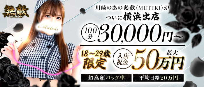 当店『無敵』は川崎南町にある高級ソープランドです。 貴女の夢や目標が達成できるように全力でサポートします! ■高級店ならではの… 本指名バックは業界最高水準!手取り額の違いに自信あり! 雑費免除システムあります! 一定の条件はございますが、実際に雑費一切ナシのキャストも多数在籍! ※詳しくは面接の際にご説明いたします。 完全日払いかつ、当店は他店でありがちな【月雑費】など 余計な雑費は一切ありませんのでご安心ください。 シフトは完全自由出勤なので、好きなときに働けます!1日3~4時間でもOK! 遅刻や欠勤などによる罰金もありません。 ■未経験でも安心! 「私でも働けるのかな…」と気負いしてしまいがちな高級店。 デビュー前に女性講習員による講習があるので安心♪ お客様は常連の会員様がほとんどで、紳士的な方が多いので安心して働いていただけます。 実際に多くの女性が未経験からスタートしています。 待機中も個室待機なので、周りを気にせずにお休みいただけます。 面接の際には、JR川崎駅からの無料送迎を行っています。 応募当日の面接も大歓迎! 私たちスタッフが誠心誠意バックアップしますので、お気軽にご相談下さい♪ ご連絡お待ちしております!