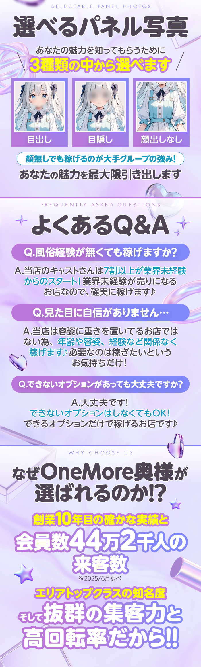 容姿や年齢、経験は関係ありません、どなたでも入店できます♪