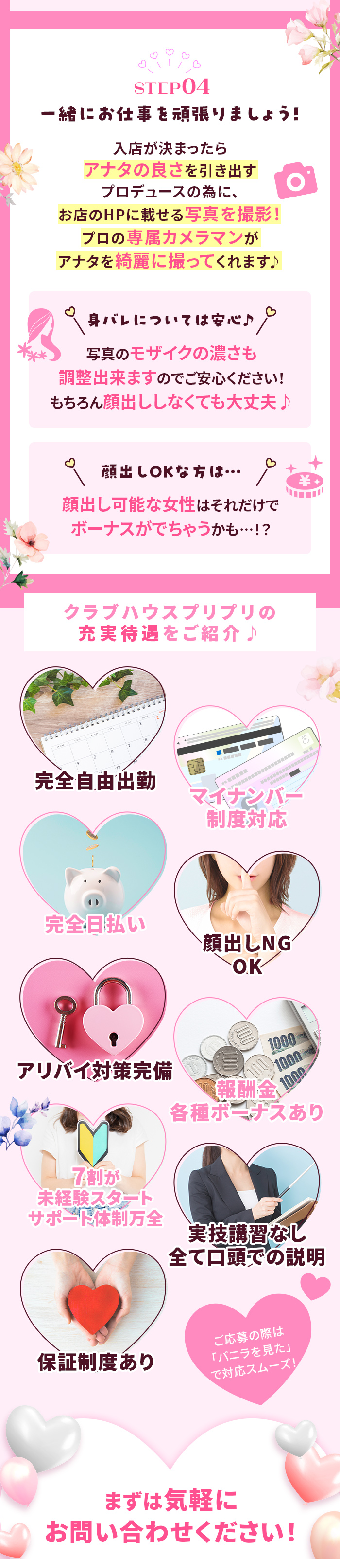 - 未経験の方でも安心して働くことができます!講習を受けることで稼ぎ方が飛躍的に上がります!