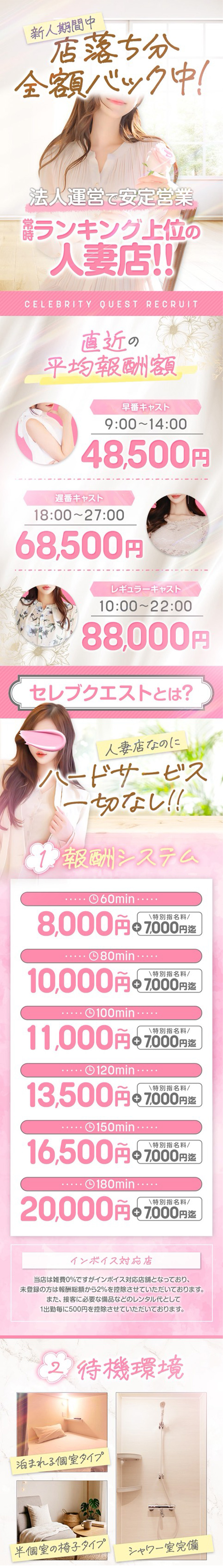 大人の女性が輝けます!稼ぎやすさ&働きやすさが抜群!「20代から40代までの、大人の女性が輝けます」と話してくれた“たかはし”さん。同店には待機保証制度のほか、お給料とは別にボーナスを支給するなど、稼ぎにつながるポイントがたくさんあるのだそうです。また、働きやすさも抜群。個室の待機所や寮があるうえ、顔出しなしでお仕事をすることも可能とのことでした。
