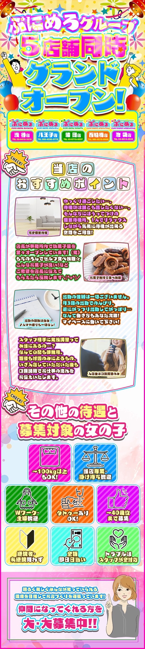 ぷにめろ渋谷をご覧いただきありがとうございます!! 未経験の方が8割を占める当店、顔や体型は関係ありませんm(__)m 一緒に頑張れる方を大募集しております(^^)/