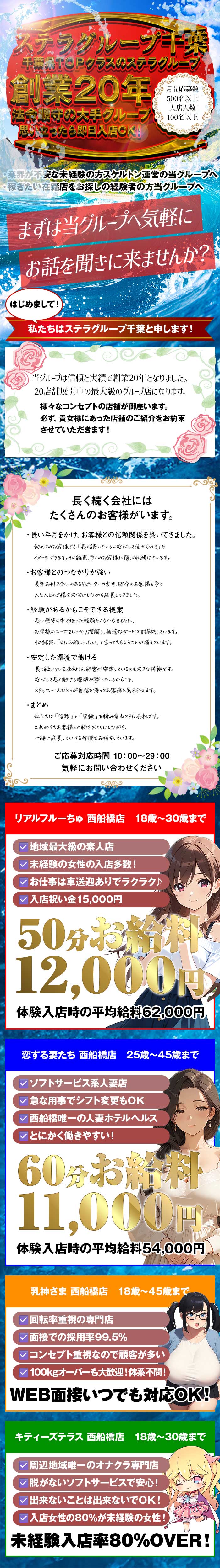 西船橋、唯一の人妻ホテヘル「恋する妻たち」です。 大手グループで法令順守!細かい部分もしっかりしております! 創業17年目!会員様の絶対数が違います! 安心安全に働ける環境です☆彡 身バレや、お客様管理、スタッフ対応など 自慢できる部分を上げだしたらキリがありません! 更に人妻店には珍しくソフトサービス! 未経験の女性から経験のある女性まで! 是非とも気軽にご質問頂ければと思います!