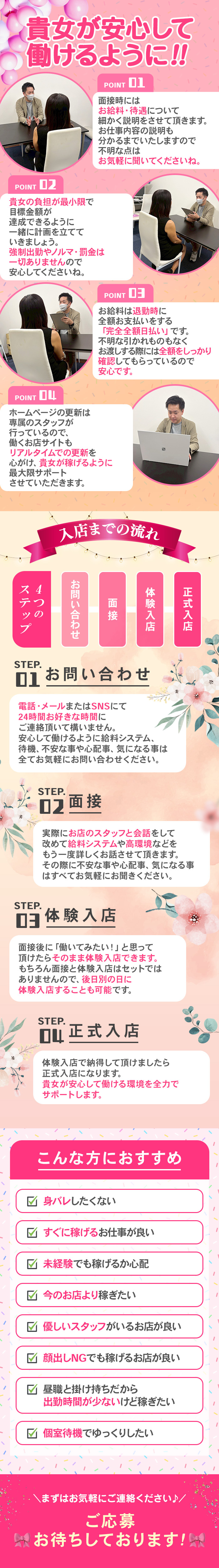 面接から体験入店までの流れを大公開!! 自社スタジオや店内の雰囲気もこれを見ればバッチリ( ◠‿◠ ) 賢い大人女子はタイパ重視で稼いでます♪