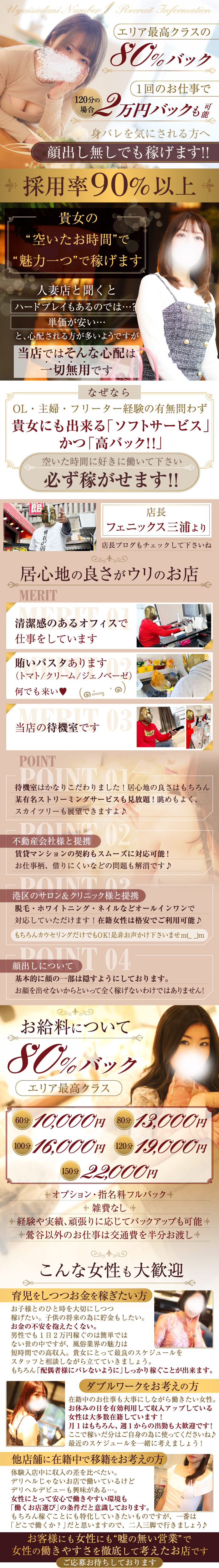 アットホームな雰囲気!客層がいいので未経験の方も働きやすい同店は2023年12月にオープンしたデリバリーヘルス。店長の“フェニックス三浦”さんは「スタッフとキャストが一丸となって支え合う、アットホームお店です」とアピールしてくれました。また、客層はとても良好。「不安に思う方も多いと思いますが、遊びなれた、紳士的な方ばかりですご安心ください」とのこと。