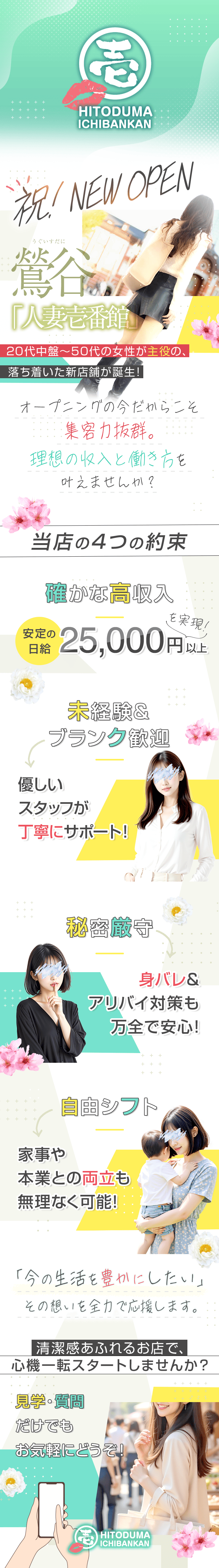 大手グループが経営しているお店だよ。待遇や条件も手厚くて安心だし、集客力もあって女の子が稼ぎやすい!待遇や条件はグループの中でも店舗ごとに変わってくるから、気になるポイントは問い合わせて聞いてみよう♪