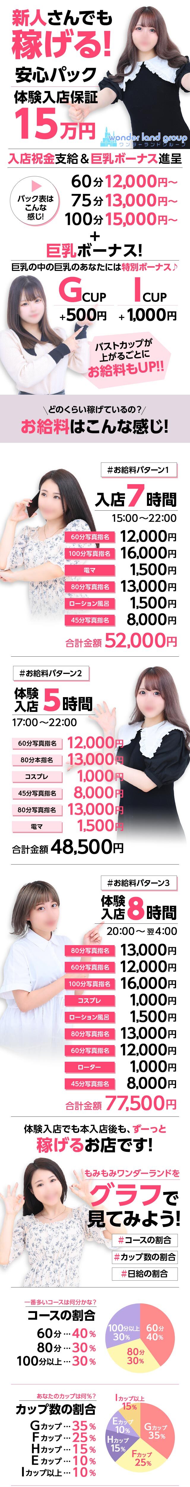 リアルお給料を大公開!みなさん、こんにちは♪もみもみワンダーランド店長です!いつも店長ブログをご覧いただきありがとうございます(^^)/お仕事をお探し中の皆様が一番気になるのはやっぱり「お給料」ですよね!そこで!今回当店のリアルなお給料実績を大公開いたします!!+++++++++++++++ 高リピートレア出勤 『まりなちゃん』 2025年7月29日(火)~本日のお仕事時間 8時間~ 61,000円+++++++++++++++お忙しい大学の大学院生ということで週に一回か二回くらいの出勤の女の子巨乳の女の子なら!短い時間でも稼げる!!!いつも頑張ってくれちゃってます♪日々の研究にとっても忙しく将来は有能な研究者になるという『まりなちゃん』愛嬌の良さとサービスが満点が大好評で出勤の日はがっつり稼いでくれてます!愛嬌も満点で♪いつもとっても明るい彼女楽しく働いてくれてて嬉しいです!とっても癒されると大反響でリピーター様も安定して増えてます!これからも頑張って欲しいと思います(^^)/お疲れ様でした!!!