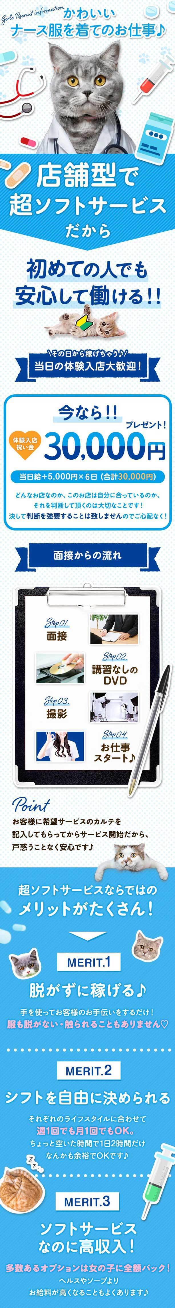 手を使うだけ・見ているだけ・または女の子が受け身にならなくてOKなソフトサービスメインのお店だよ♪初心者の女の子には始めやすいお仕事だね!コースによってサービスの違いがあるお店もあるみたいだから、お仕事内容は事前に聞いてみよう!